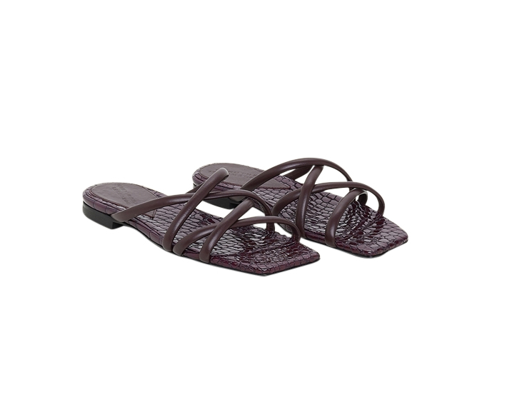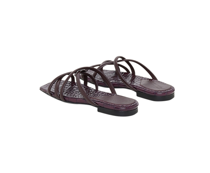 Flache Sandale von DOROTHEE SCHUMACHER mit überkreuzten Strap und Fußbett aus Ziegenleder.