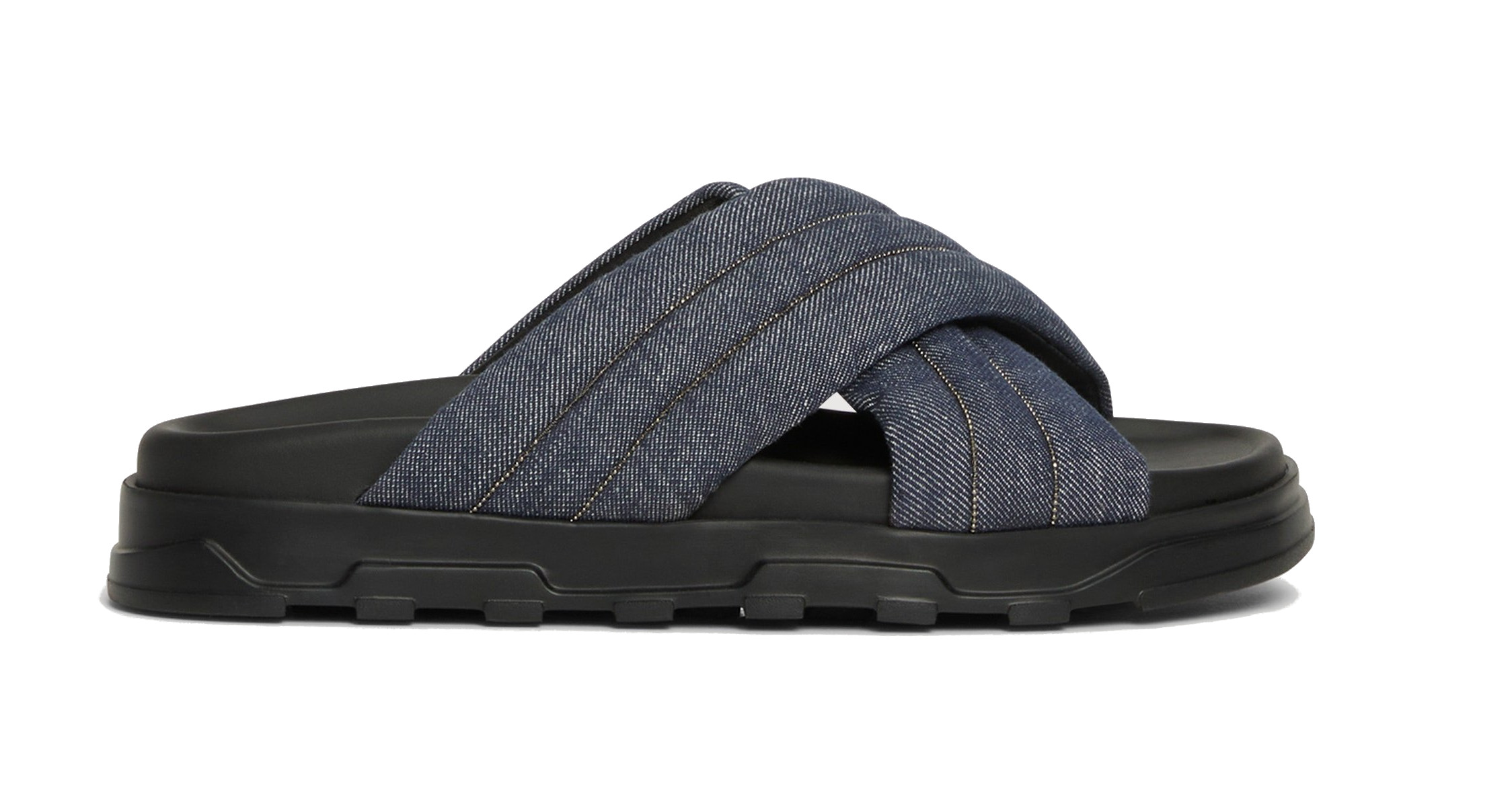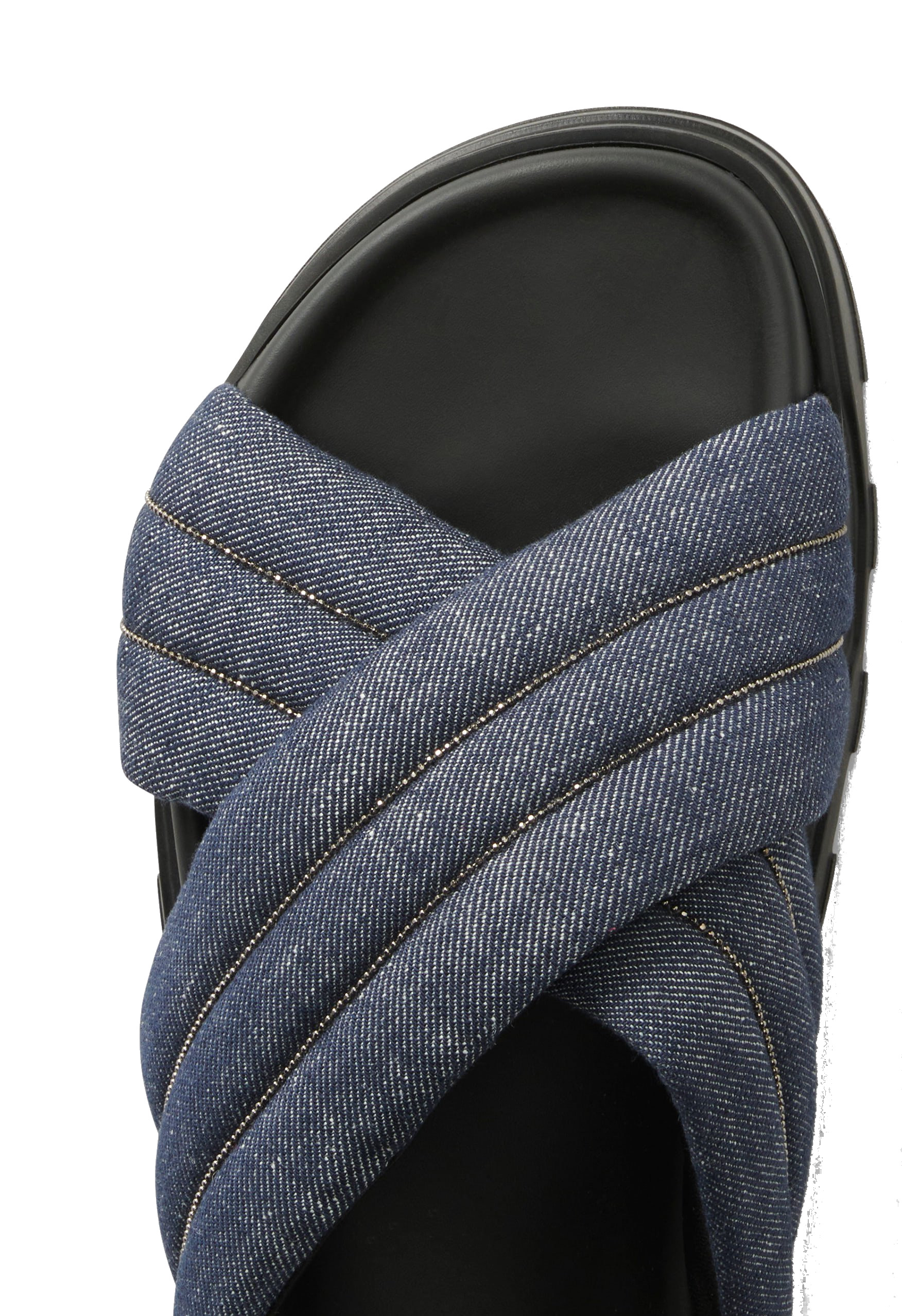 Flache Denim Sandale von FABIANNA FILIPPI mit glänzenden Detail.