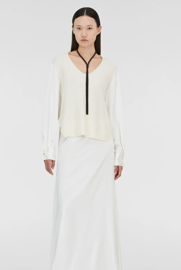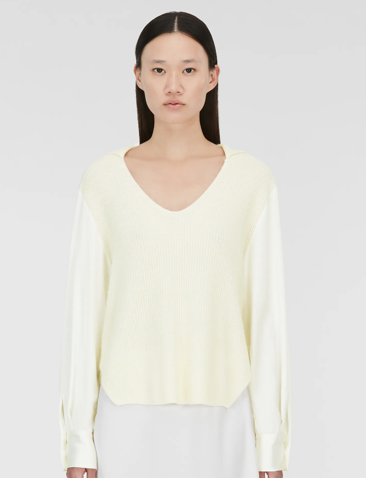 Pullover mit Wollsatinärmel von FABIANA FILIPPI mit V-Ausschnitt und Polokragen.