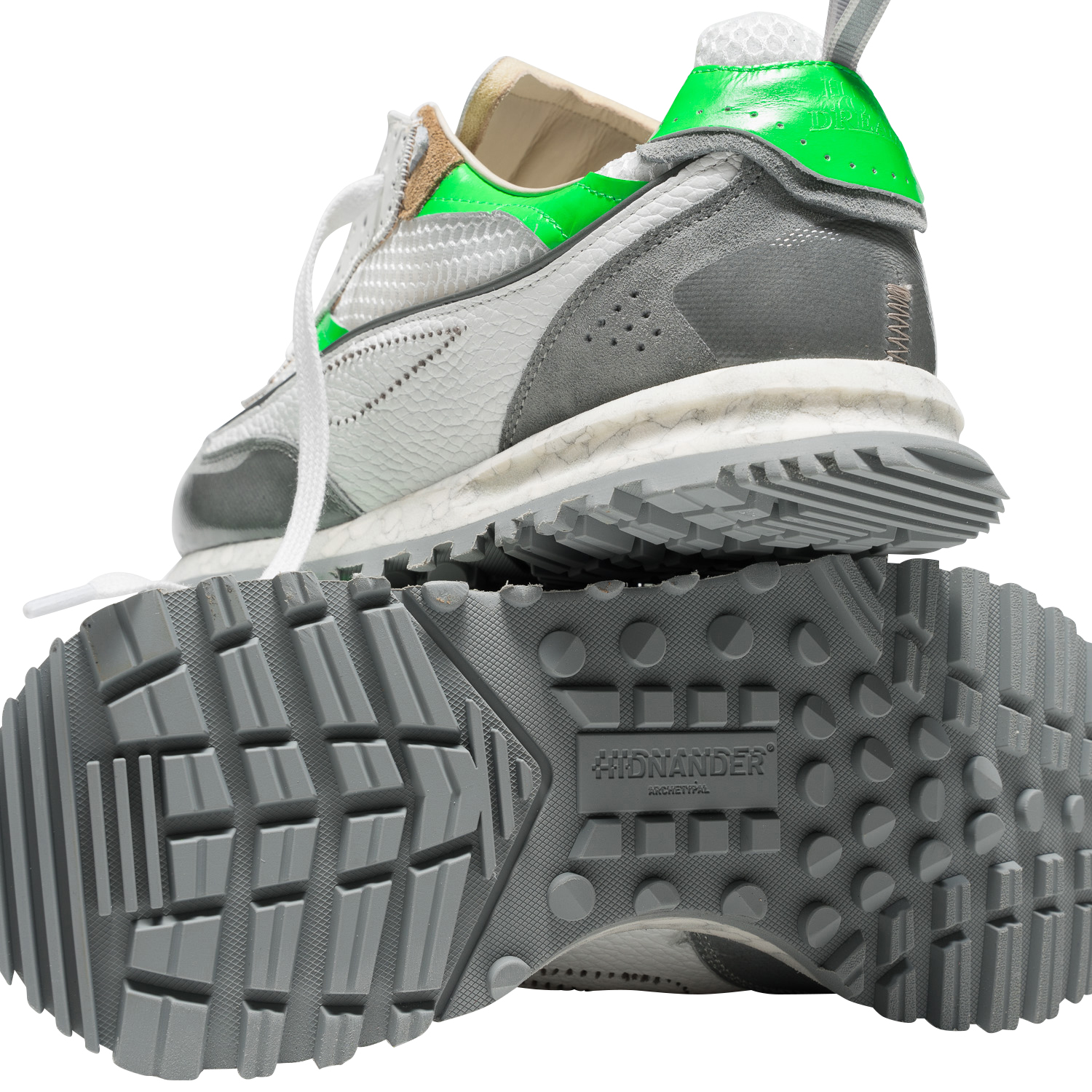 Sneaker Threedome Zero Low von HIDNANDER inspiriert von den späten 80er Jahren mit handgemachter EVA-Schaumsohle sowie Echtleder und Wildleder Details.