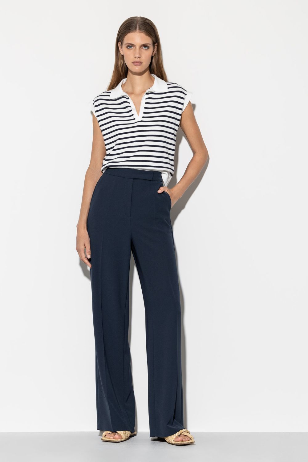 Hose mit weitem Bein und Bügelfalte von LUISA CERANO aus einem Techno Crepe.