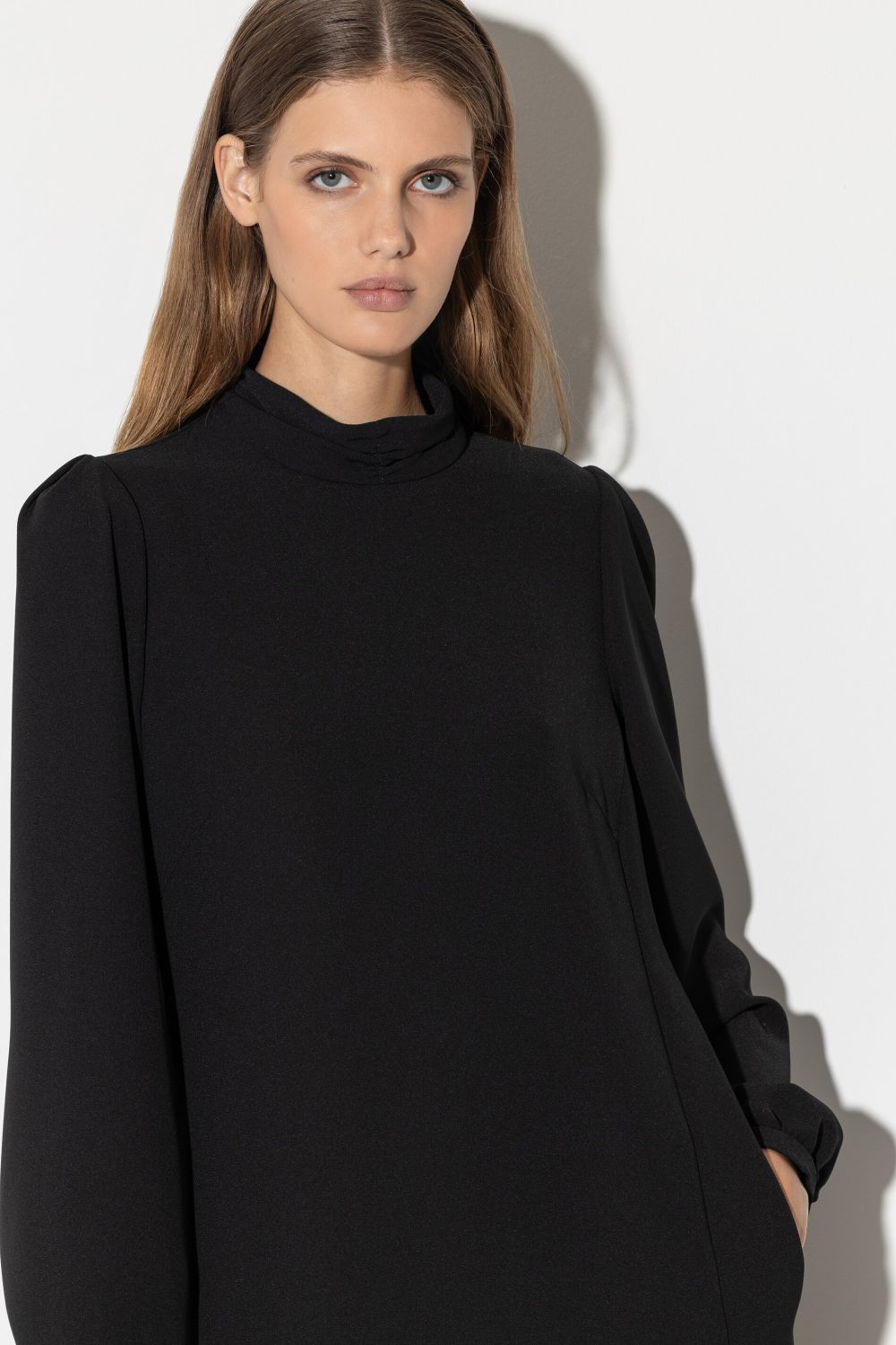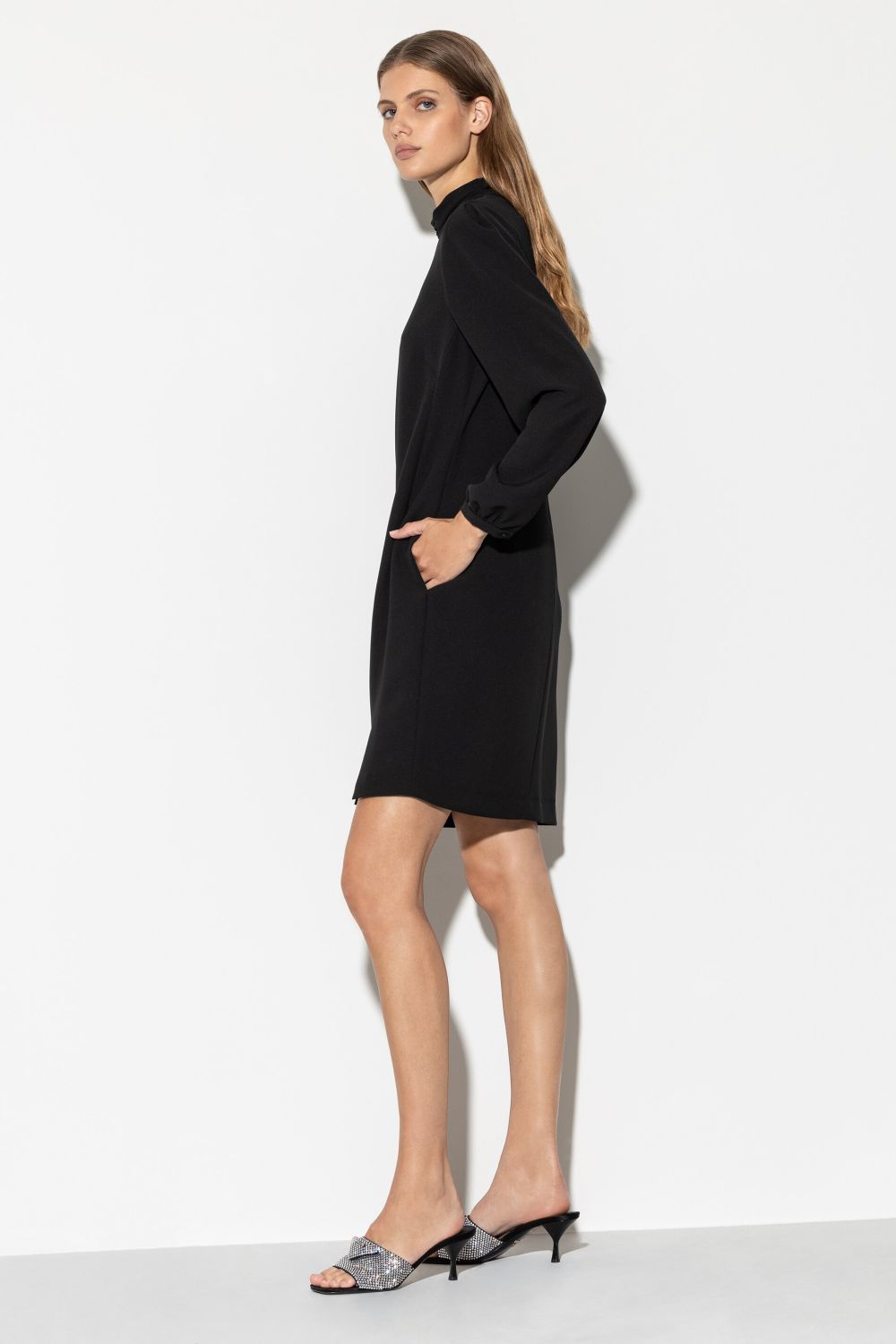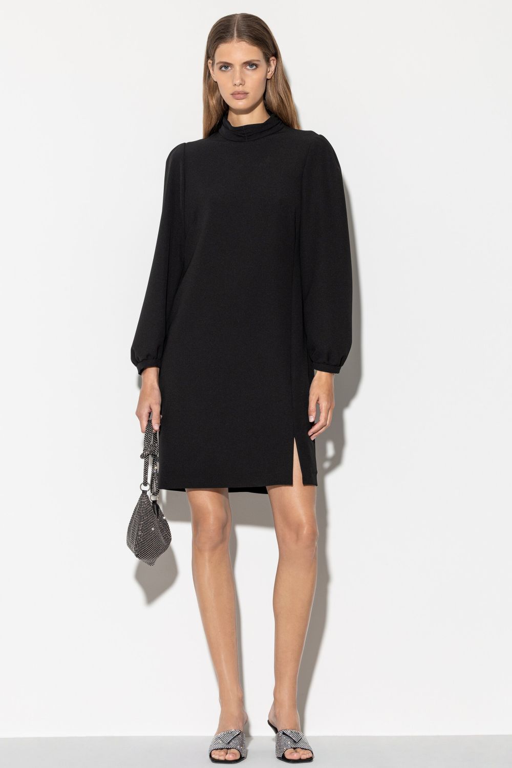 Gerade, geschnittenes Minikleid von LUISA CERANO aus fließender Techno-Crepe Seide mit leichten Ballonärmeln.