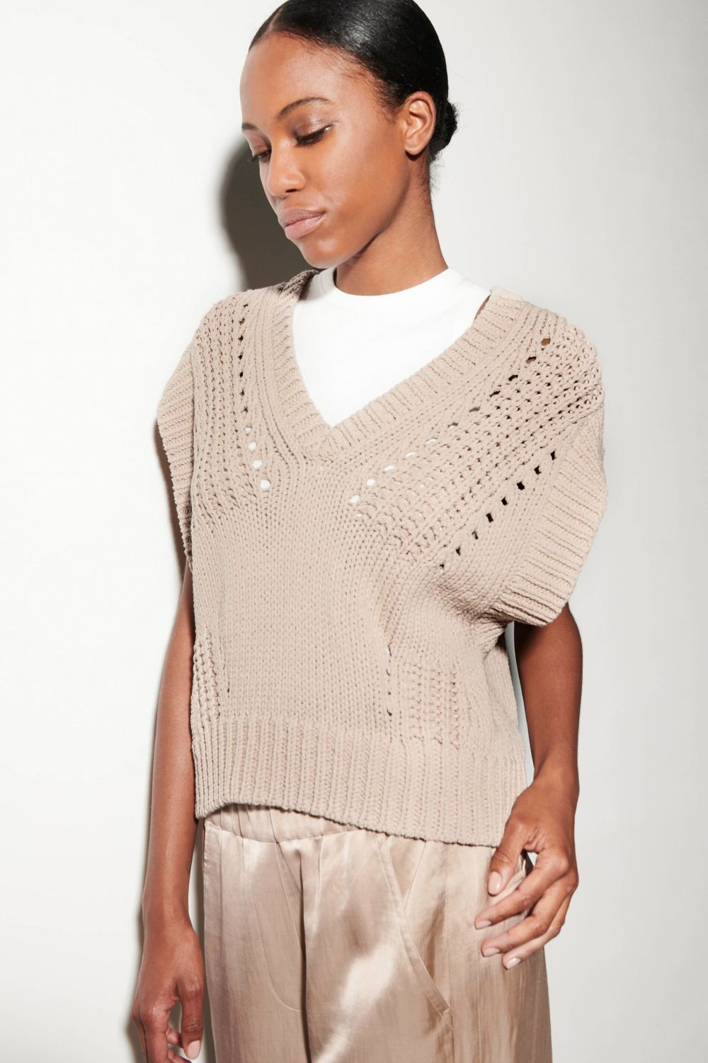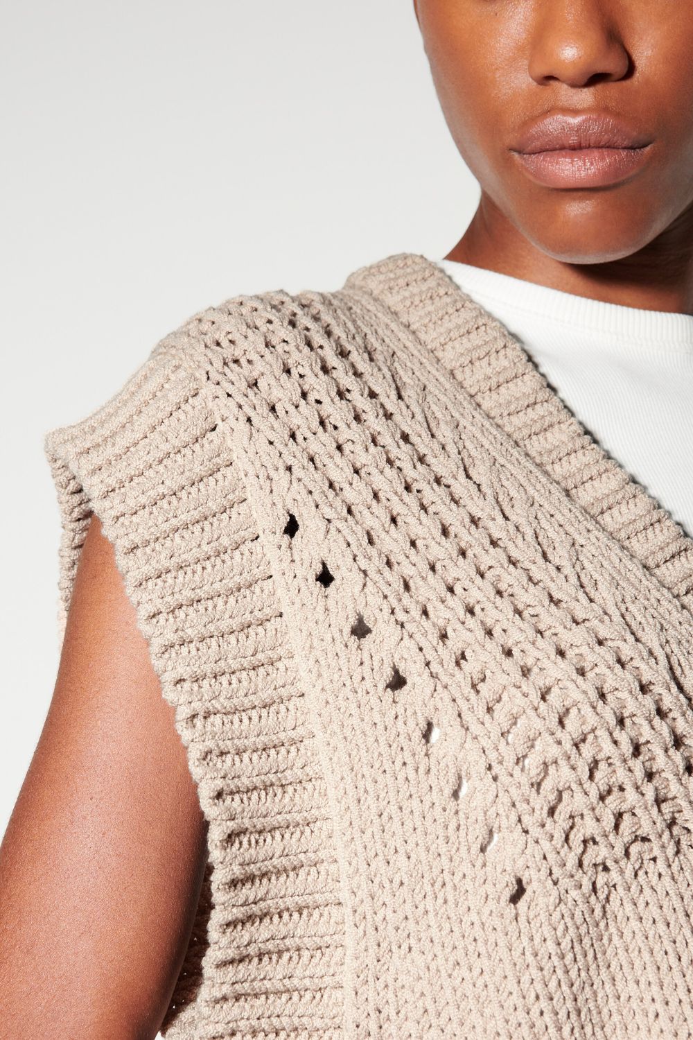 Pullunder von LUISA CERANO aus italinienischem Baumwollgarn in Handstrick-Optik mit aufwändigem Strickmuster.