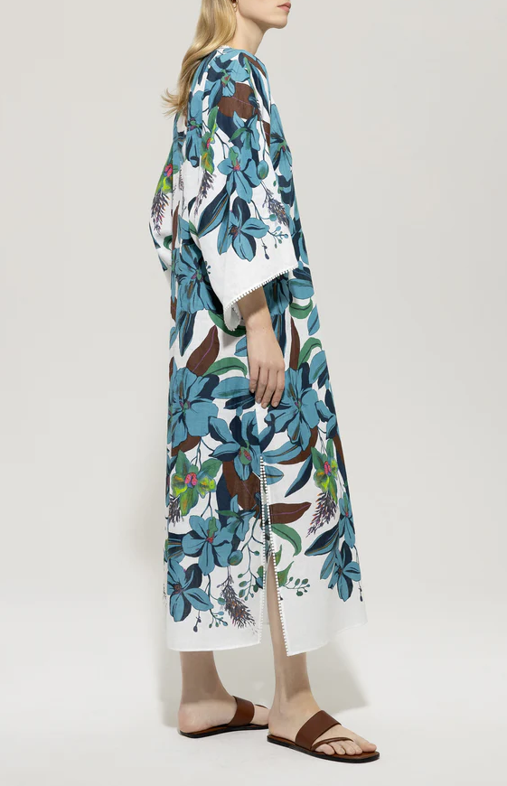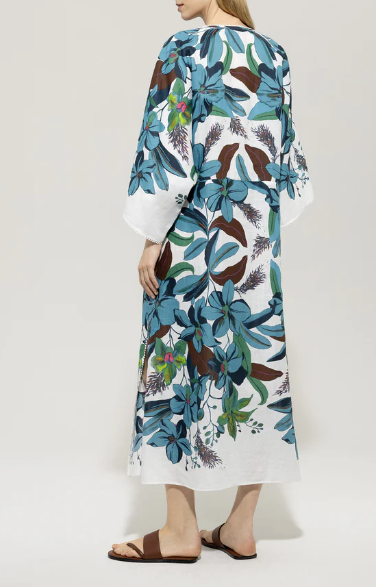 Langes Tunikakleid von LUISA CERANO aus feinem sommerlichchem Ramie Stoff mit exklusivem Hawai-Print.