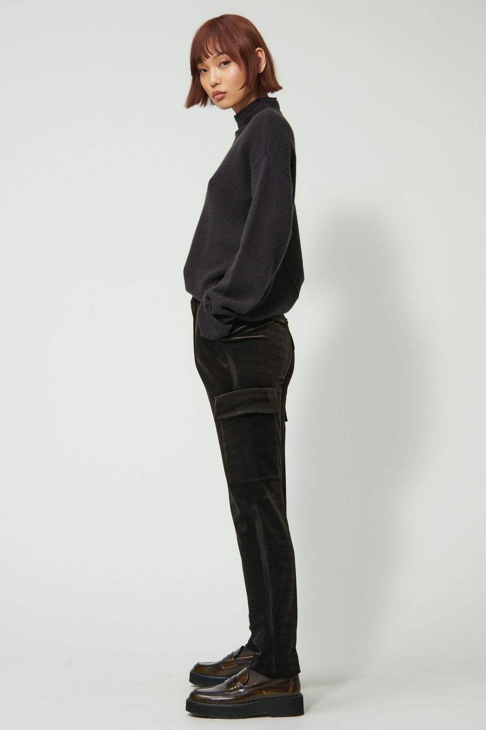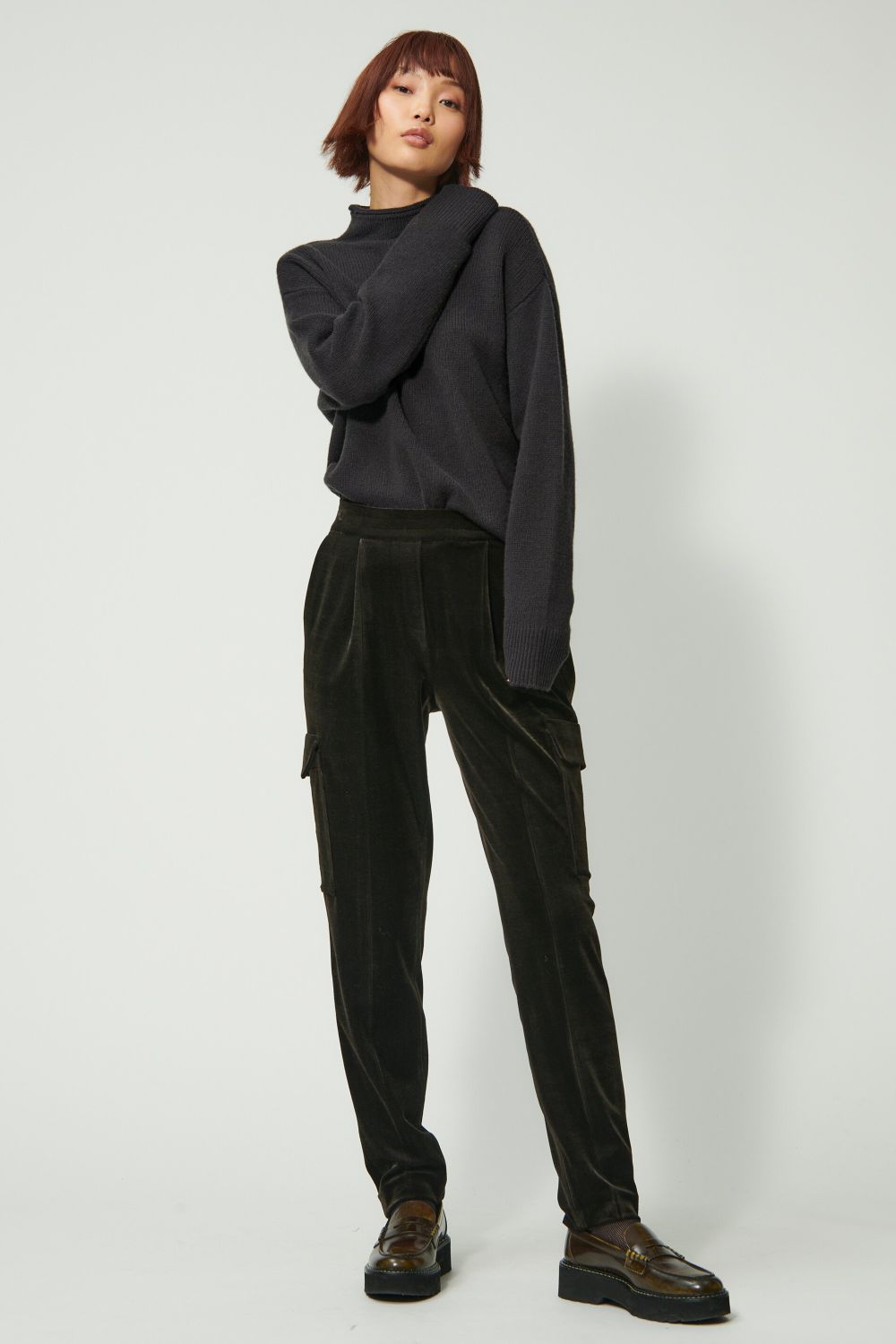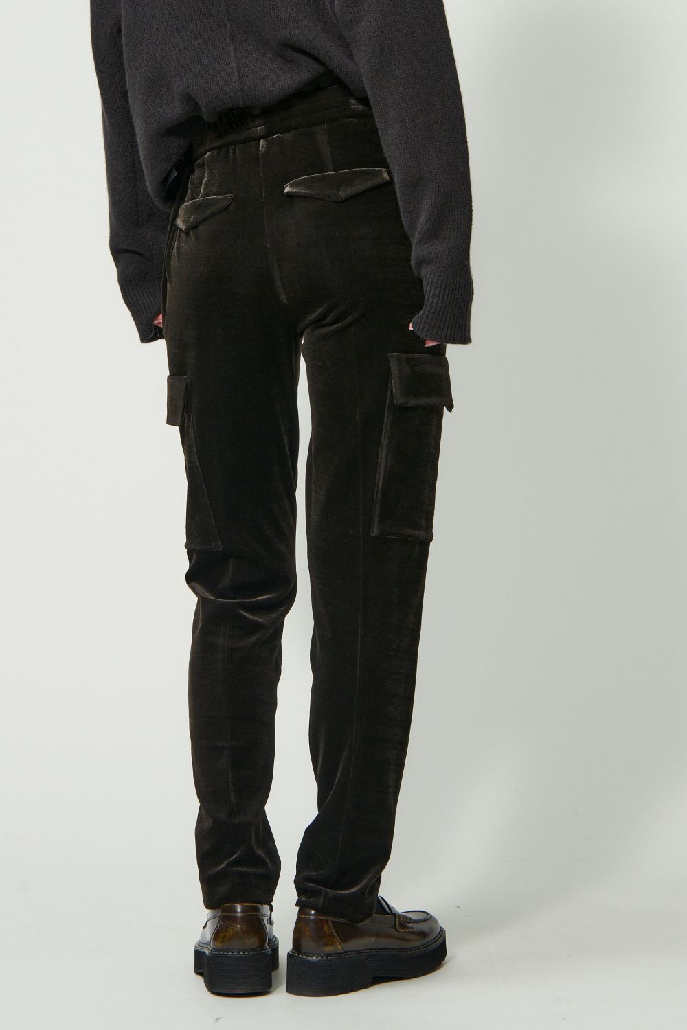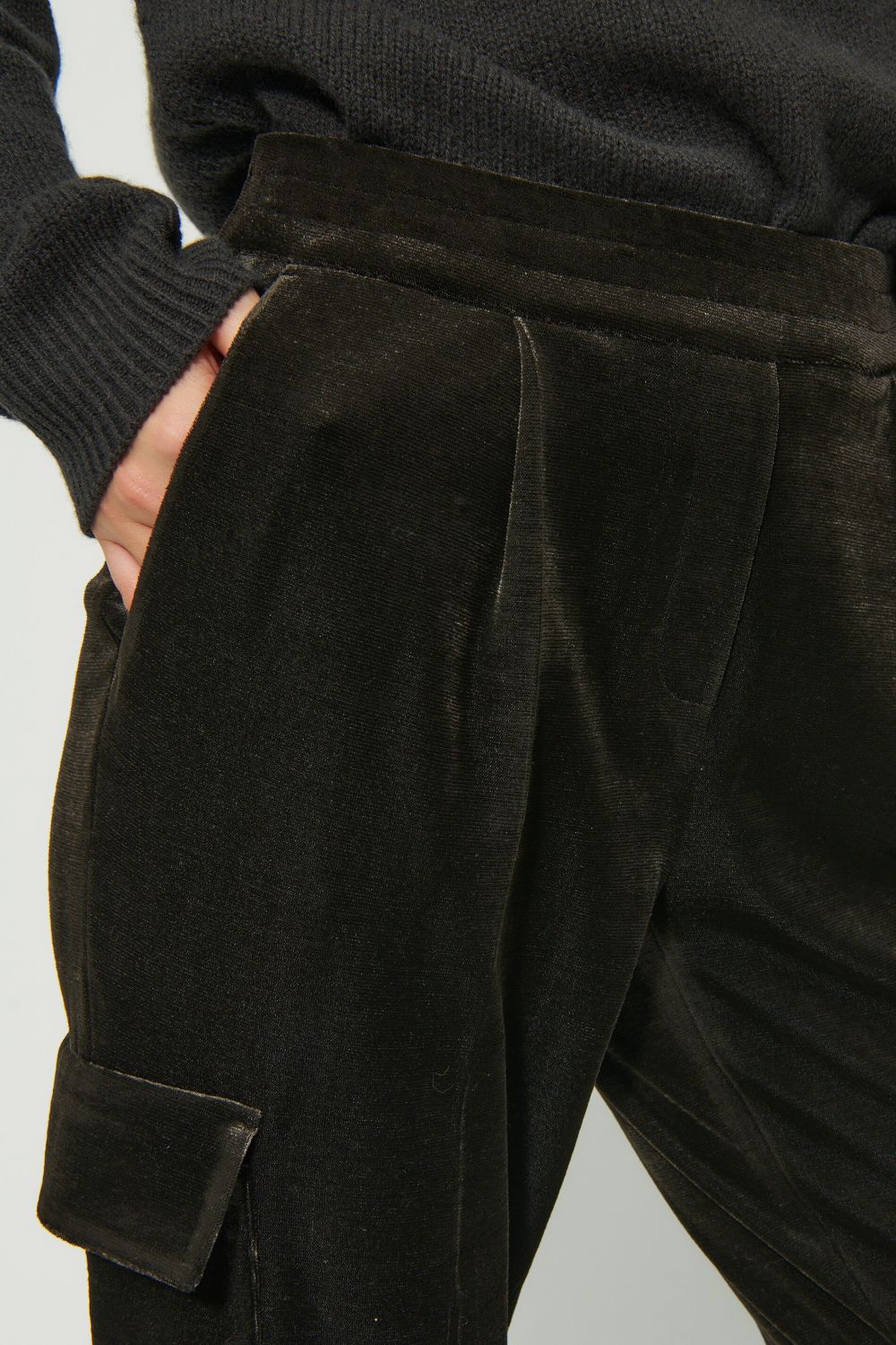 Leger Jogpant von Luisa Cerano aus einem dezent changierendem Samt mit sportiven Cargotasche.