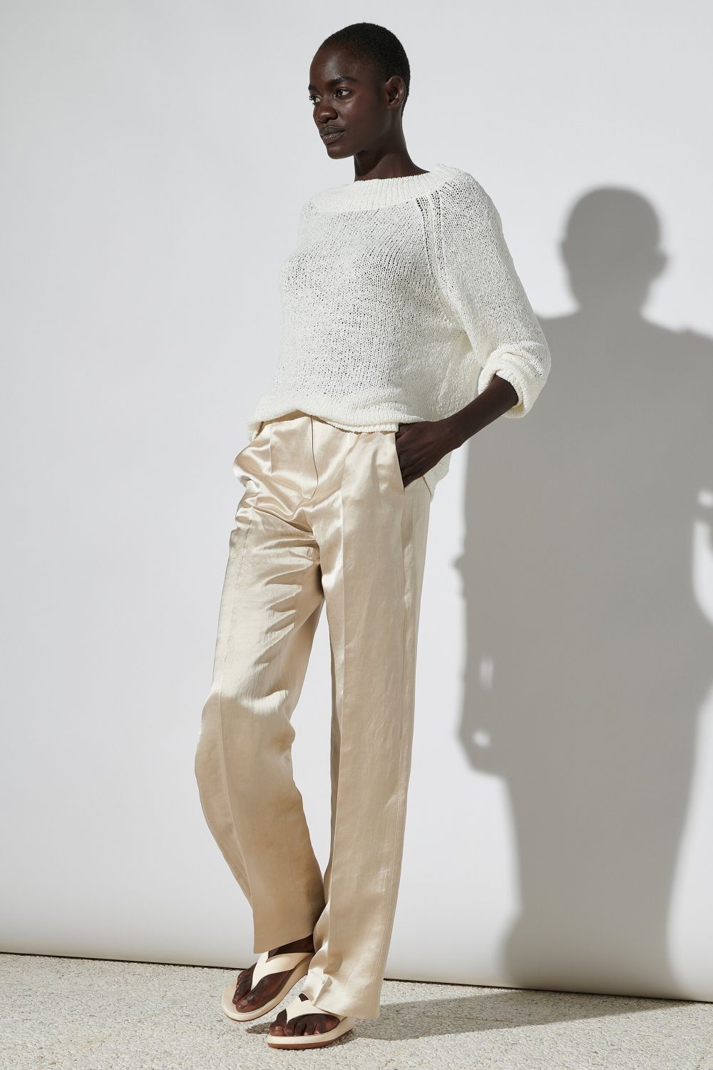 Lange, weite Hose von LUISA CERANO aus einem modernen Leinen - Viskose - Mix mit leichtem Glanz.
