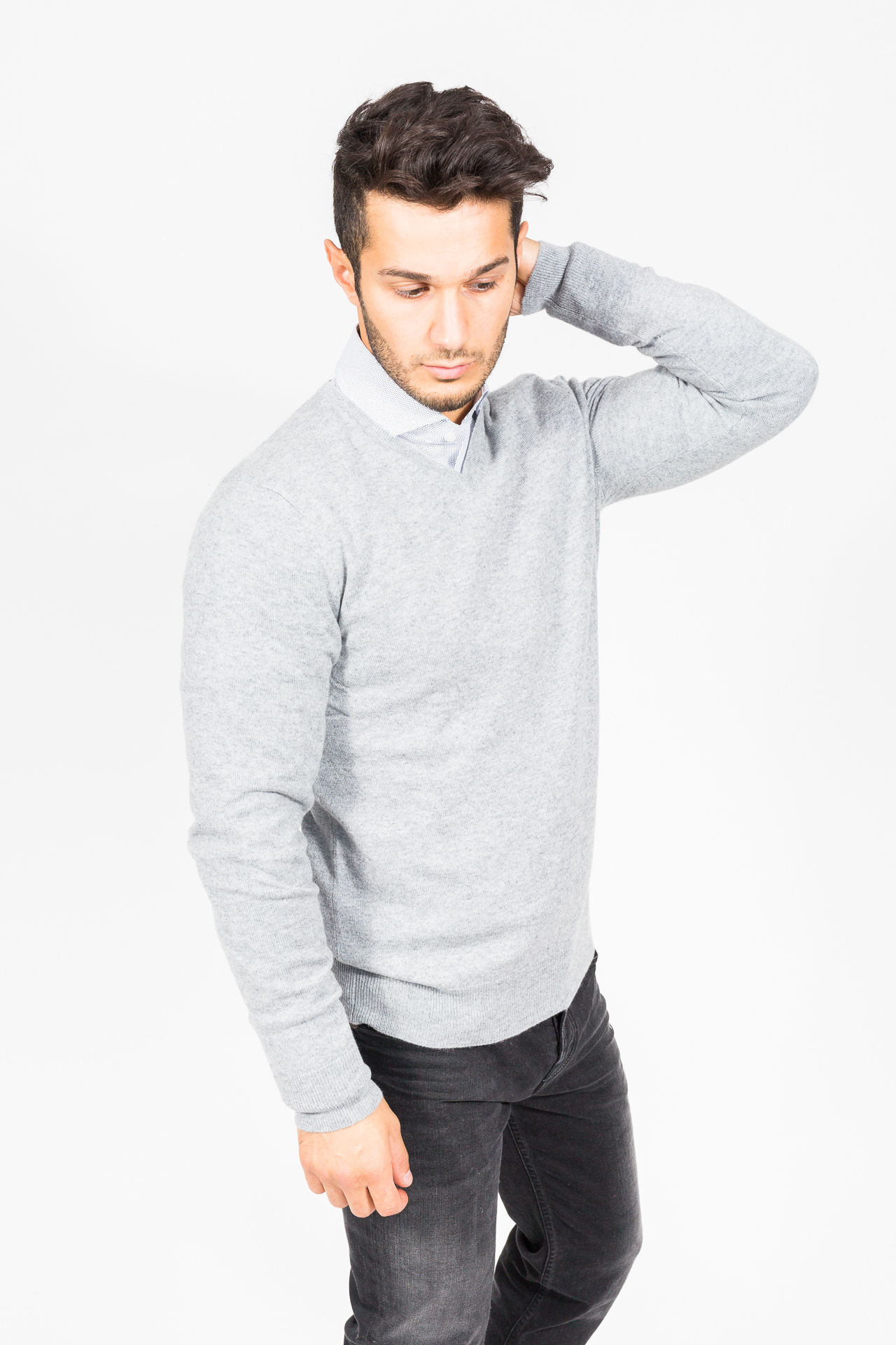Produktinformationen "René Lezard - Herren Kaschmirpullover mit V-Neck grau"