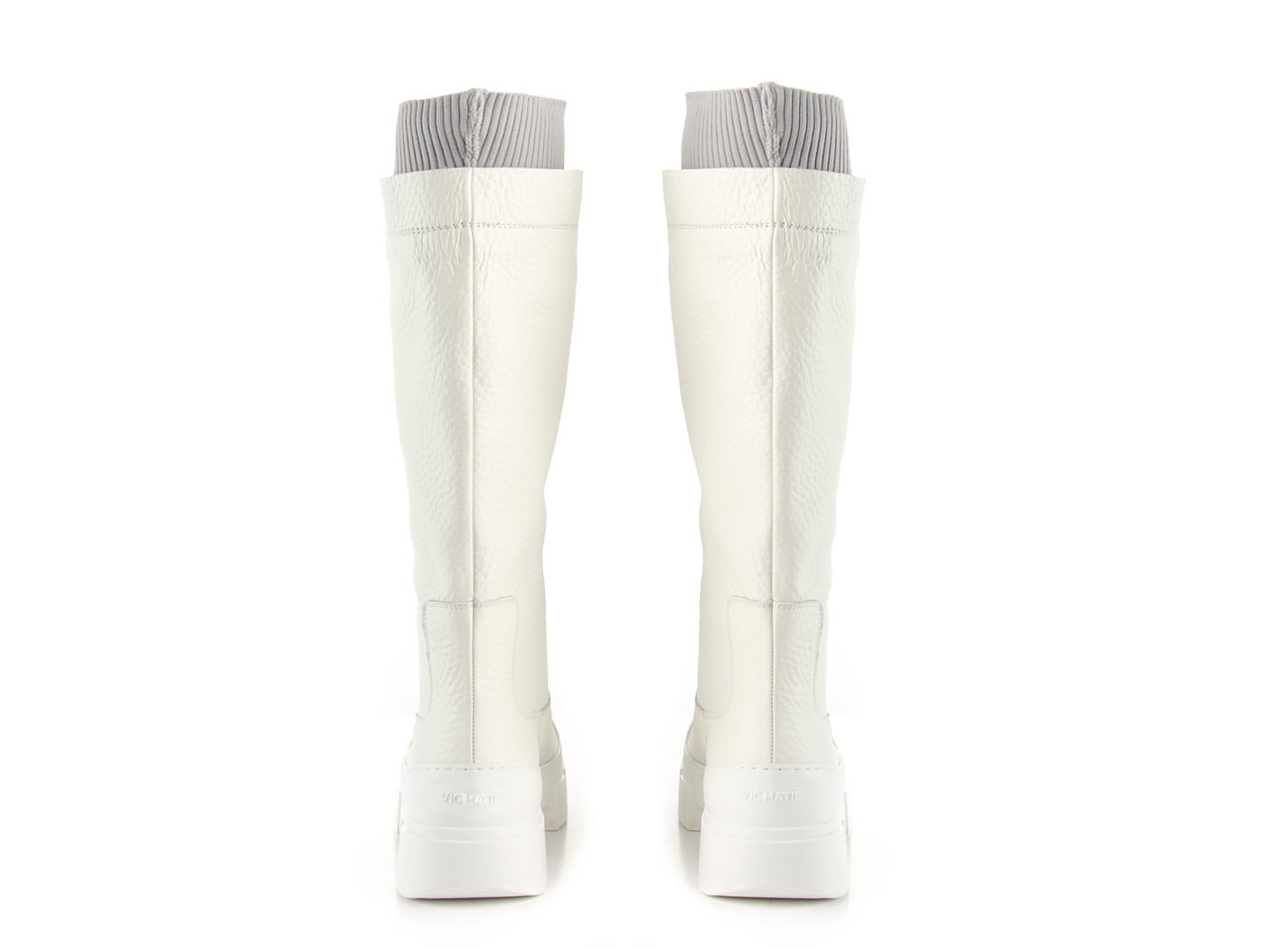 Der Schaftstiefel von VIC MATIE ist aus einem grob, genarbten sehr weichem Kalbsleder mit eingestrickter Manschette.