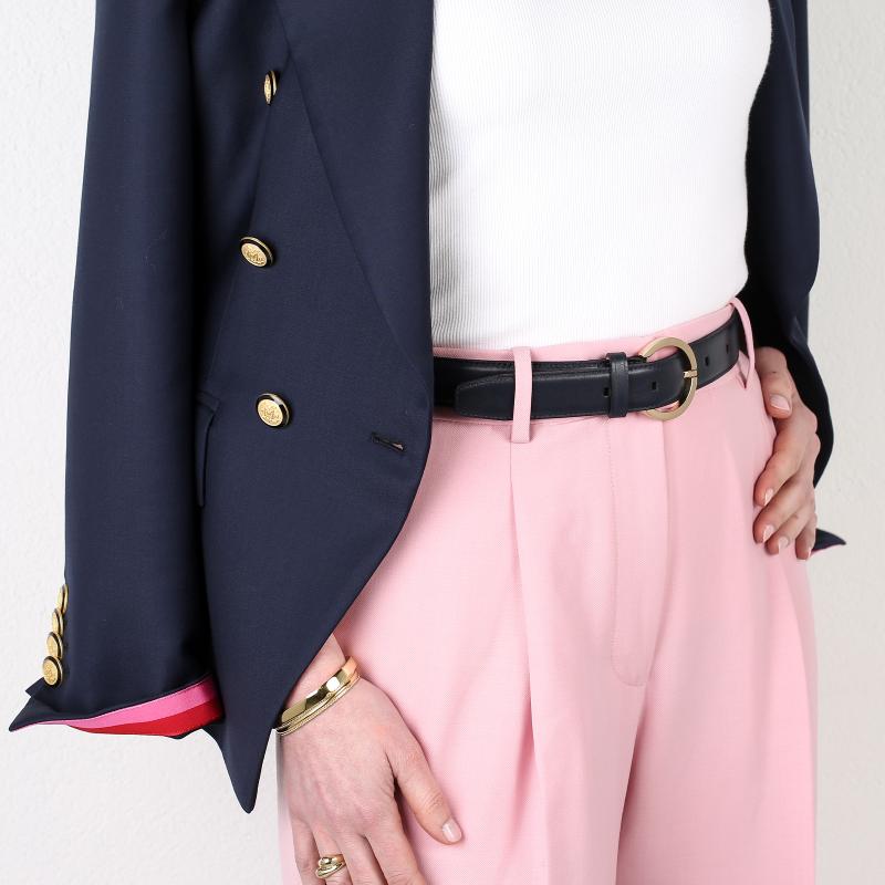Ledergürtel aus Nappaleder von MAISON BOINET mit goldener, runder  Messingschließe.