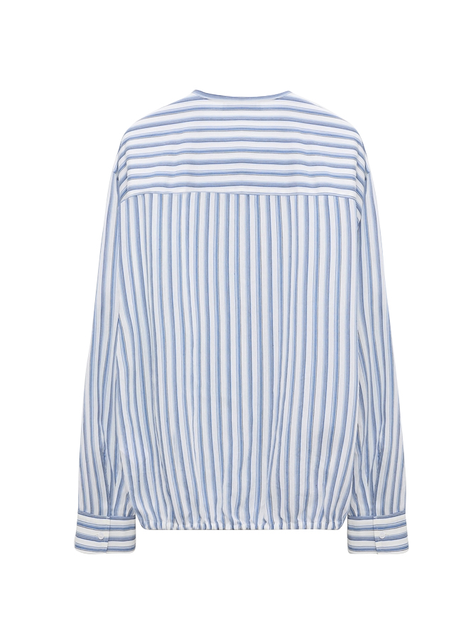 - Blouson-Bluse aus gestreiftem Seide-Viskose Mix