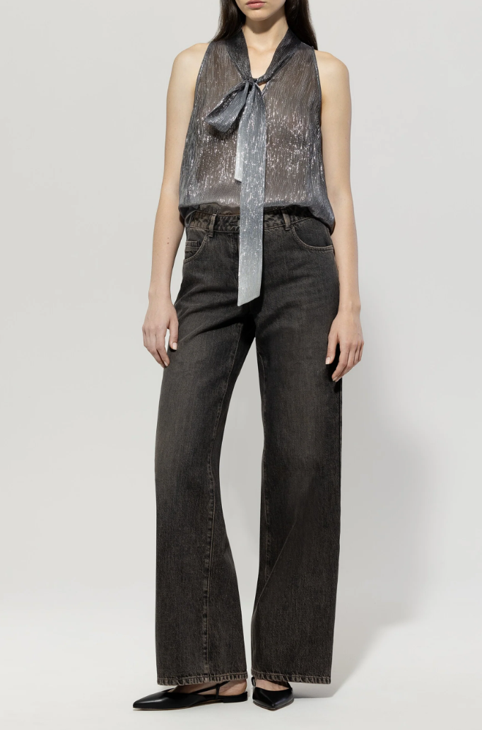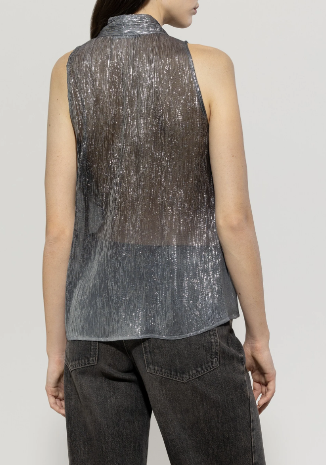 Ärmellose, semitransparente Schluppenbluse von LUISA CERANO mit effektvollem Glanzgarn.