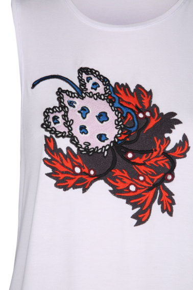 Slim Fit Tanktop von 10DAYS aus Strech-Surf.Scuba und Logostickerei auf der Brust. Rundhalsausschnitt Breite Träger Logostickerei  Modelname: Slim fit top scuba Farbe: ecru Material: 92% Polyamid, 8% Elastan
