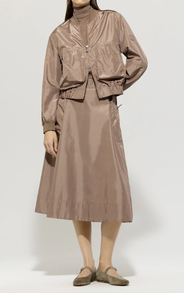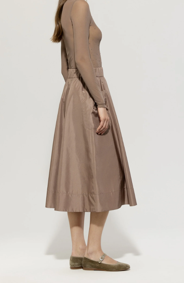 Rock von LUISA CERANO aus einem glänzendem Outdoor-Changeant-Taft in weit, ausgestellter Form mit aufgesetzten Taschen. Outdoor-Changeant-Taft Ausgestellte Form Breiter Gummibund Aufgesetzte Taschen mit elastischem Kordelzug Modelname: Taft Rock Farbe: mushromm Material: 100 %  Polyester