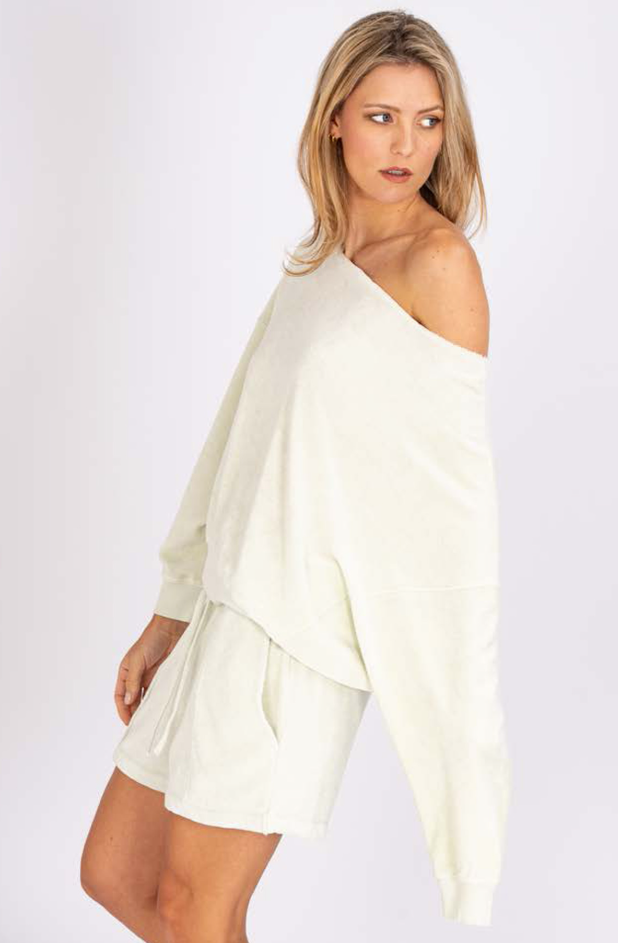 Lässiger Frottee Sweater von TRUE RELIGION mit U-Boot Ausschnitt.