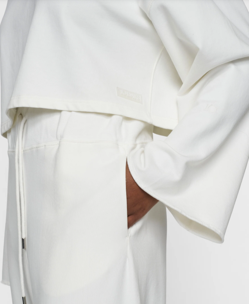 Relaxed Fit Ballethose von 10 DAYS aus einem weichem Baumwollfleece, mit breiten, hohen Bund. Hochgeschnitten Relaxed Fit Hoher Bund mit Kordelzug Eingrifftaschen Gesäßtasche Breites Bündchen an den Knöcheln mit Schlitz Modelname: Ballet Jogger Farbe: ecru Material: 95 % Baumwolle, 5 % Elasthan