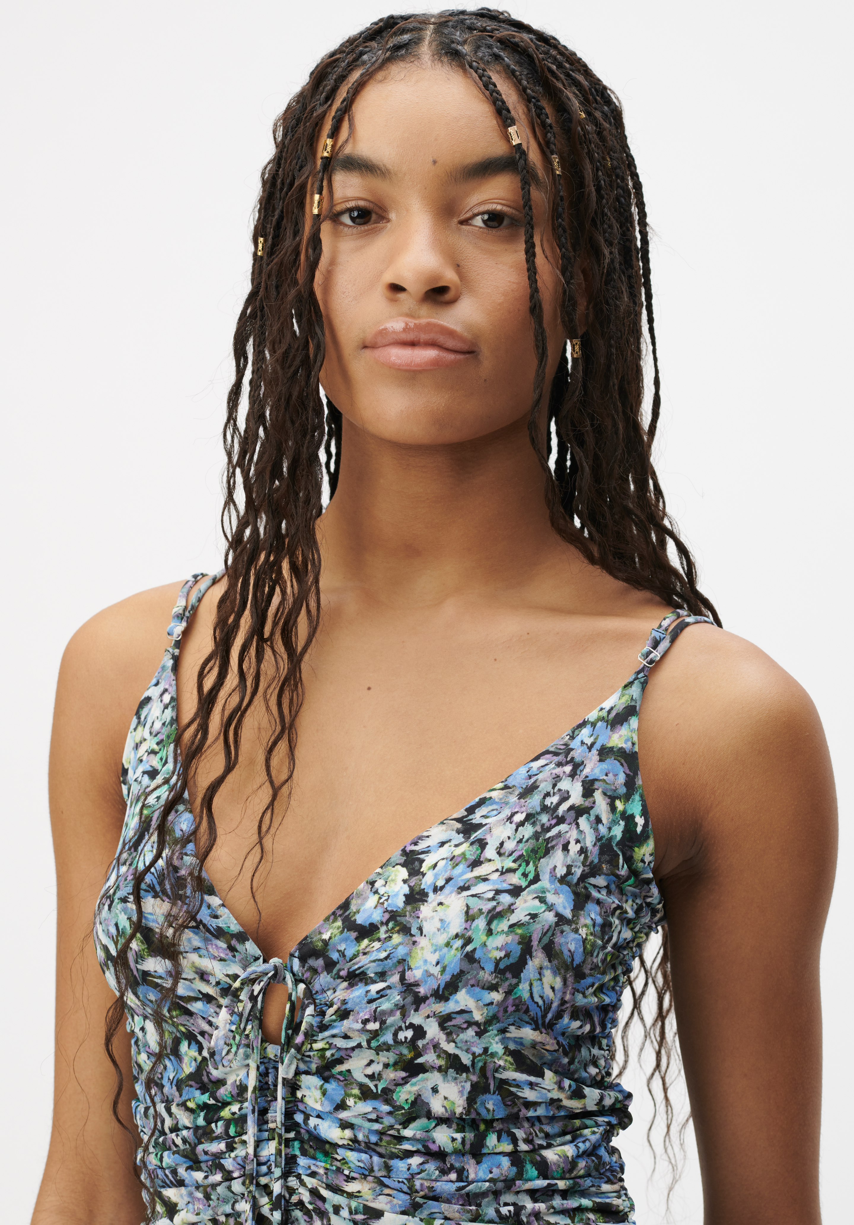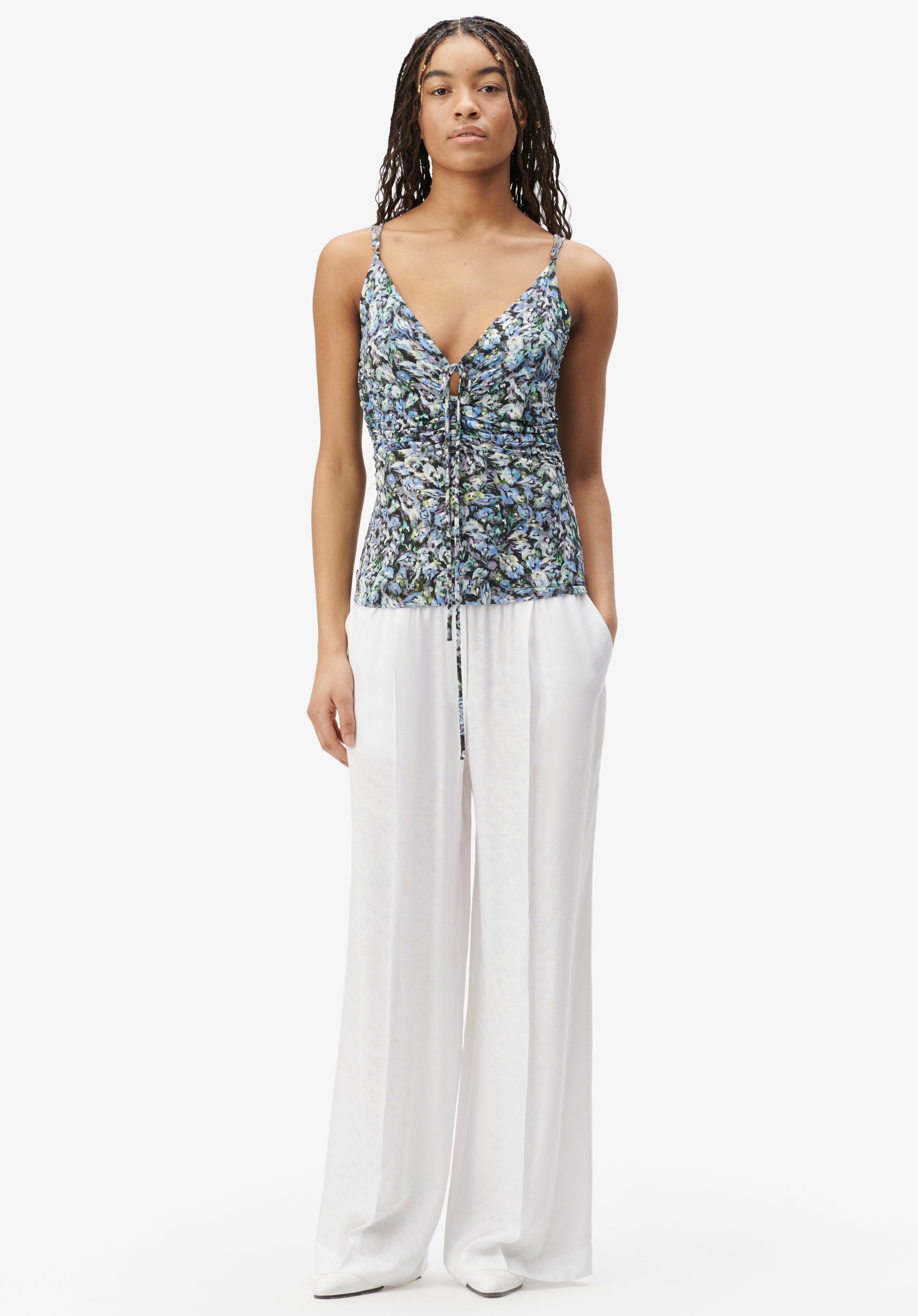 High-Summer Spaghetti-Top von LALA BERLIN aus einem leichten Crepé Jersey mit Print.