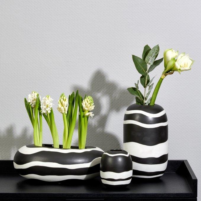 Das Gefäß Azuki von LAMBERT nimmt sich der Form eines geschliffenen Kieselsteins an und ist ein echter Hingucker. Da Keramik aufgrund ihrer natürlichen Beschaffenheit grundsätzlich Wasser aufnimmt und speichert, empfehlen wir bei Verwendung von Frischblumen ggf. einen Glaseinsatz oder einen Untersetzer zu verwenden. Azuki nur von Hand mit lauwarmen Wasser reinigen. Keine scheuernden Schwämme nutzen.