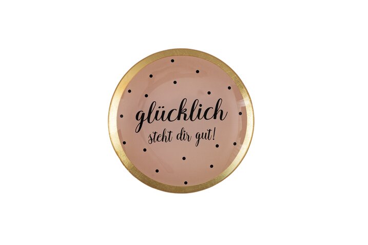 Love Plates Glasteller M Glücklich steht dir gut rund rosa