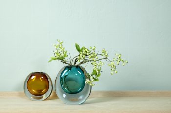 Die Vase Cariani von LAMBERT ist eine edles Designobjek aus klarem und durchgefärbtem Glas in sogenannter Überfangtechnik mudgeblasen. Die Vase setzt einzelne Blüten und Blättere besonders in Szene.