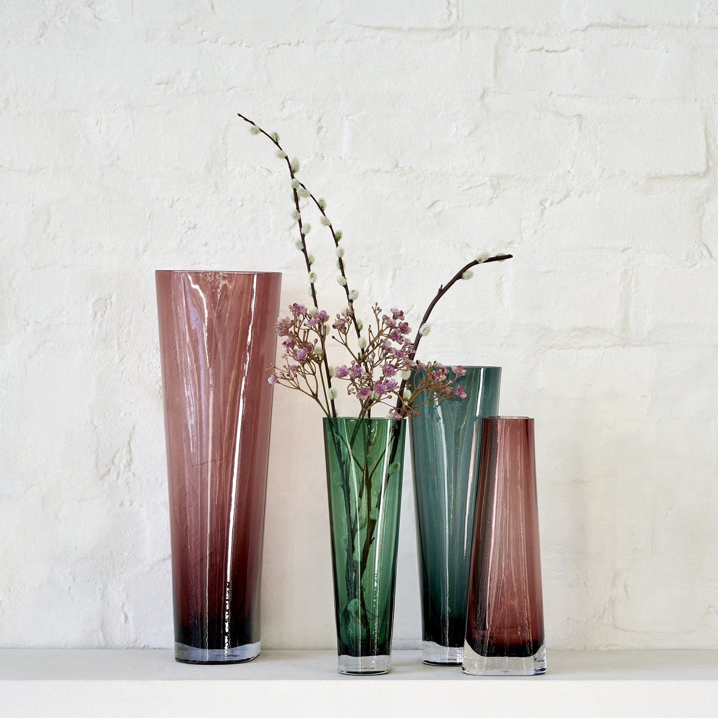Die Vase Giorgione von LAMBERT hat eine grafische Grundform und ist mundgeblasen. Eine besonders dekorative Wirkung erzielt man wenn man verschiedene Größen und Farben zusammen gruppiert.