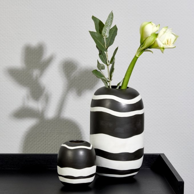 Das Gefäß Azuki von LAMBERT nimmt sich der Form eines geschliffenen Kieselsteins an und ist ein echter Hingucker. Da Keramik aufgrund ihrer natürlichen Beschaffenheit grundsätzlich Wasser aufnimmt und speichert, empfehlen wir bei Verwendung von Frischblumen ggf. einen Glaseinsatz oder einen Untersetzer zu verwenden. Azuki nur von Hand mit lauwarmen Wasser reinigen. Keine scheuernden Schwämme nutzen.